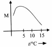 ‘x’ g of NaCl is added to water in a beaker with a lid. The temperature of the system is raised from 1°C to 25°C. Which out of the following plots, is best suited for the change in the molarity (M) of the solution with respect to temperature?