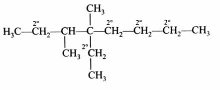 Carbon connected to two other carbons is secondary (2°) carbon and carbon connected to three other carbons is tertiary (3°) carbon.