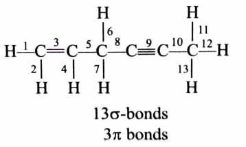 Total number of sigma ____ and pi ____ bonds respectively present in hex-1-en-4-yne are: [2025]