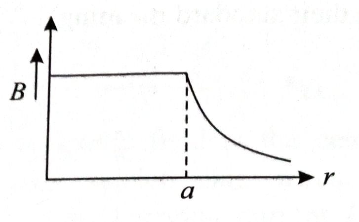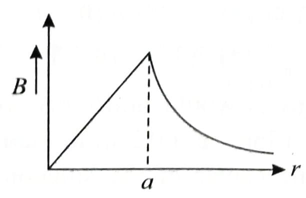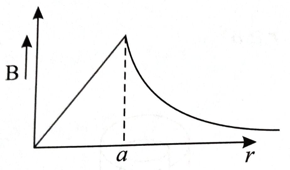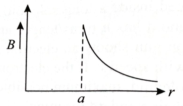 A long straight wire of a circular cross-section with radius 'a' carries a steady current . The current is uniformly distributed across this cross-section. The plot of magnitude of magnetic field B with distance r from the centre of the wire is given by [2025]