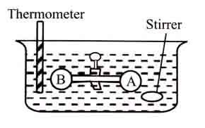 The vessel A is filled with a gas at a certain pressure. The entire assembly is immersed in water and is allowed to come to thermal equilibrium with water. After opening the stopcock the gas from vessel A expands into vessel B and no change in temperature is observed in the thermometer. Which of the following statement is true? [2025]