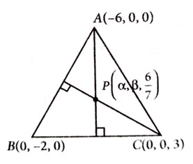 Let A(x, y, z) be a point in xy-plane, which is equidistant from three points (0, 3, 2), (2, 0, 3) and (0, 0, 1). Let B = (1, 4, –1) and C = (2, 0, –2). Then among the statements