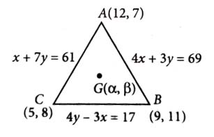 We can observe that all the three points A, B, C lie on the circle , so circumcentre is (0, 0). Since, centroid divides the line joining orthocentre and circumcentre in the ratio 2 : 1, then