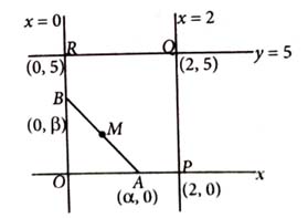 Let R be the rectangle given by the lines and . Let and and , be such that the line segment AB divides the area of the rectangle R in the ratio 4 : 1. Then, the midpoint of AB lies on a [2023]