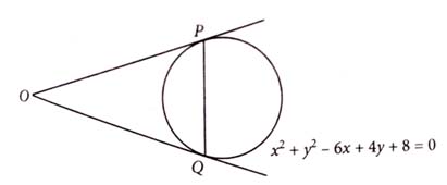 PQ is the chord of contact of the tangents from the origin to the circle, ...(i)