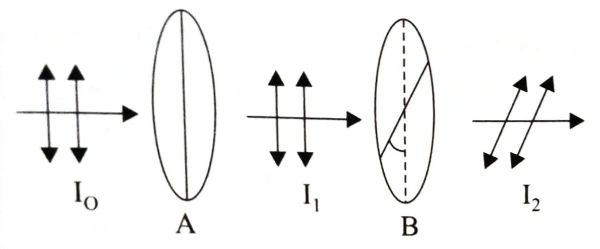 Let be intensity of unpolarised light incident on first polaroid.